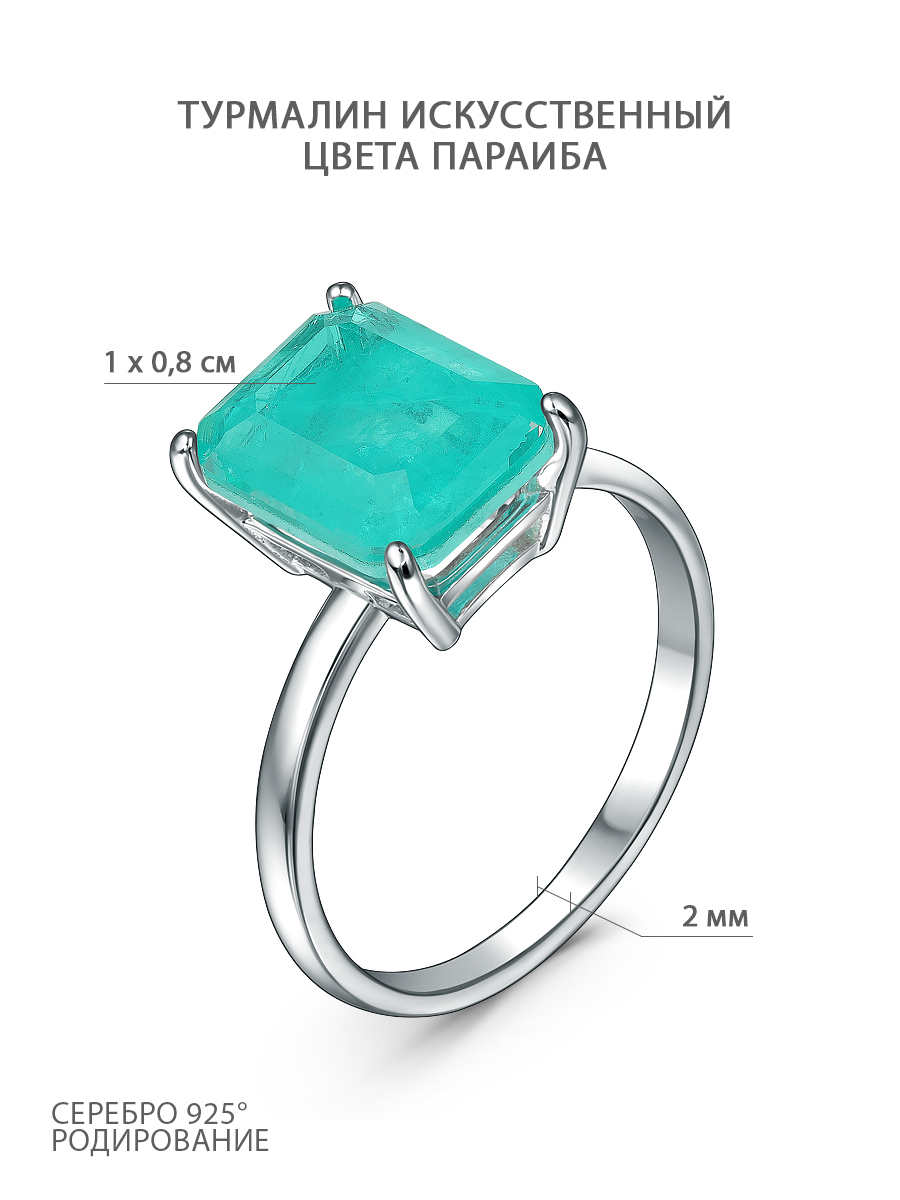 Кольцо с турмалином искусственным цвета параиба